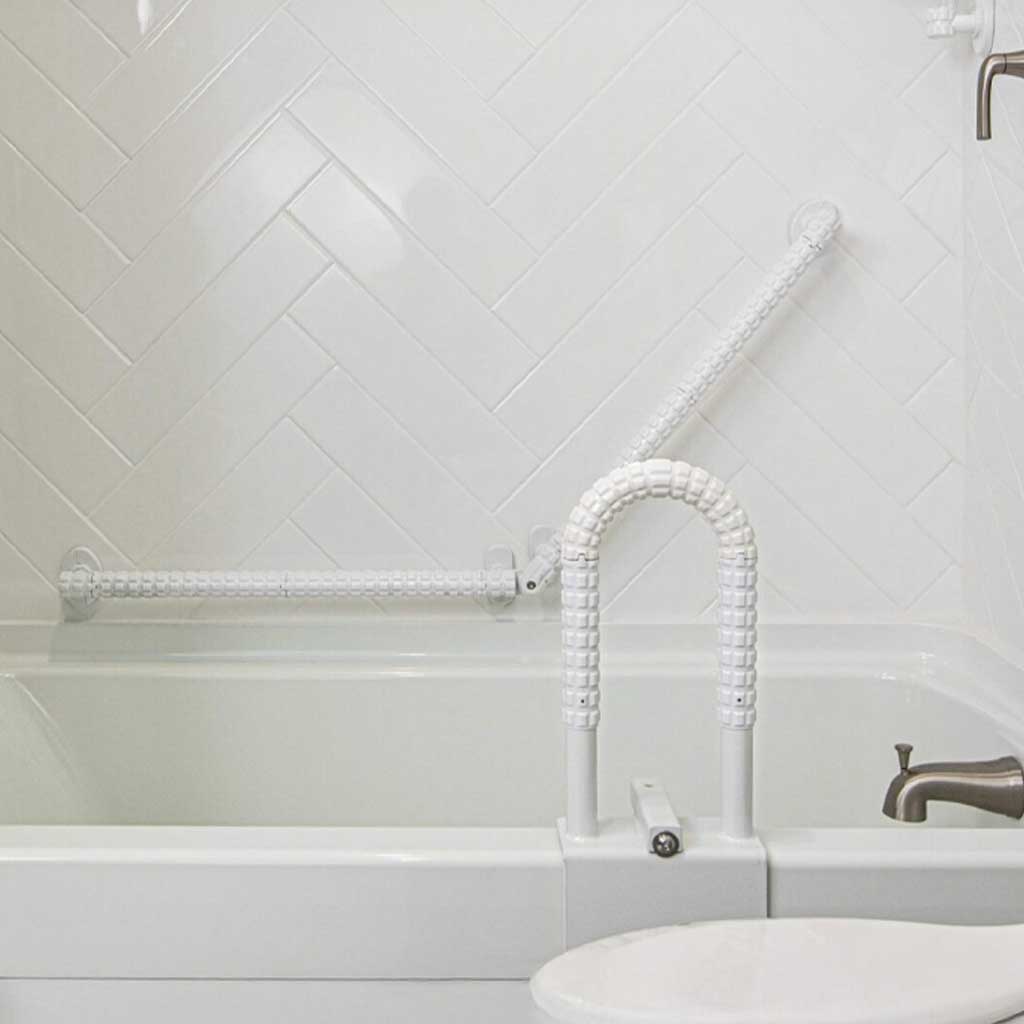 Bathtub Grab Bars provide a reliable and safe place to hold when getting into and out of the bath. They give more support for balance and stability when stepping over the bath side. The width adjustable bath hand rail fits straight-sided tubs. Installation is easy, with all tools supplied in the kit. The user weight rating is 350 lbs.