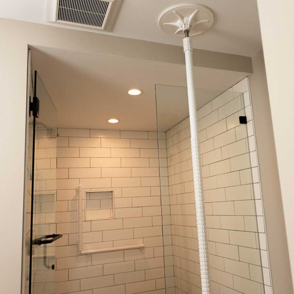 The SafetyGrip ‘Go Anywhere’ Balance Assist Pole is a versatile, alternative to wall-mounted grab bars. It’s specially designed ceiling disc allows for straightforward installation in any area with a solid ceiling and level floor—no need for screws, fasteners, or ladders. No other stability pole offers this flexibility. It’s the ultimate in ease when equipping the age-friendly home.