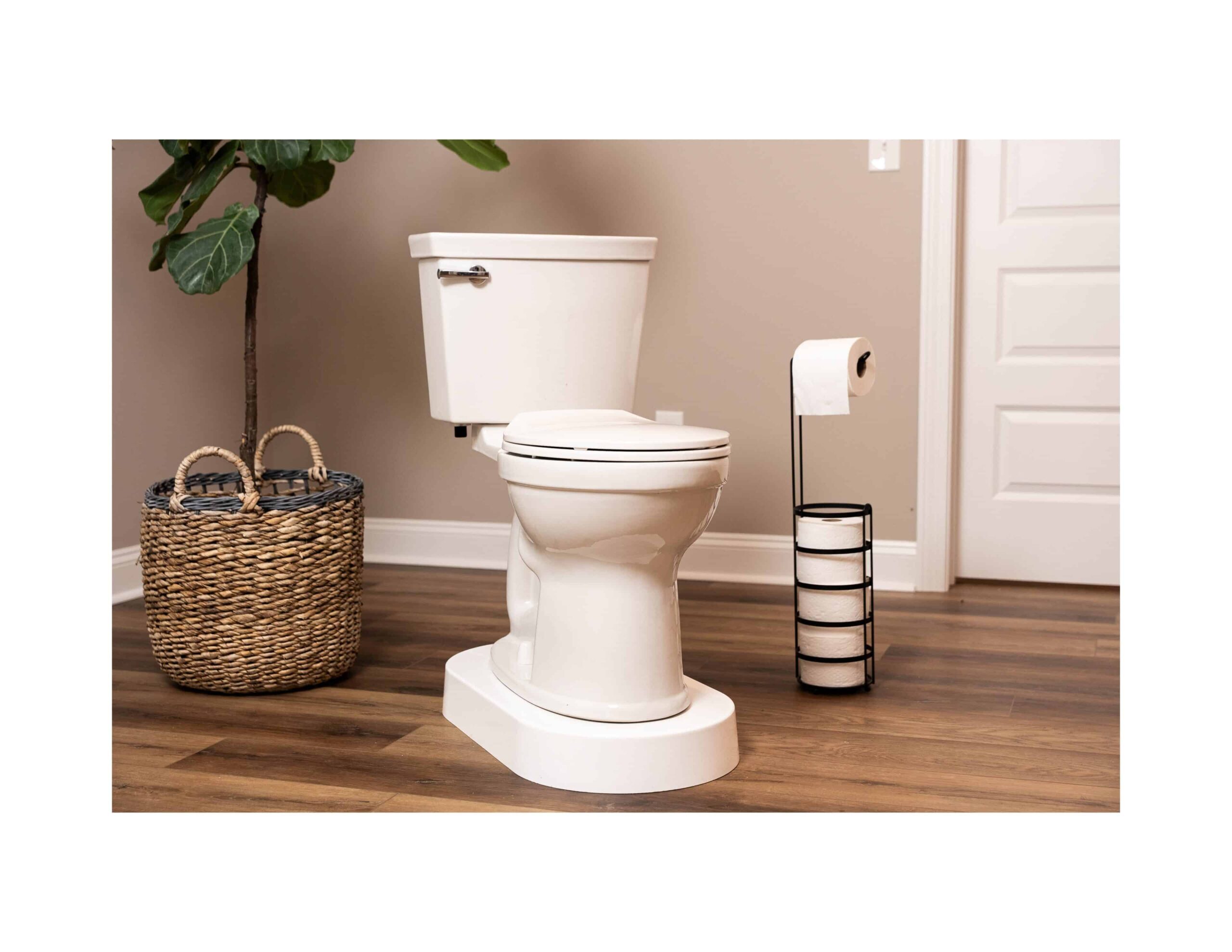 The Toilevator® raises the entire toilet by 3.5 inches, offering a comfortable and stable solution for those who struggle with sitting down or standing up from lower heights. Unlike traditional toilet risers that sit on the seat, the Toilevator® is installed at the toilet base, creating a more secure and permanent modification that blends seamlessly with your bathroom décor. It’s a discreet and effective alternative to bulky elevated seats, providing support without compromising aesthetics.